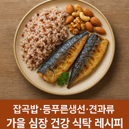 이렇게 잡곡밥·등푸른생선·견과류를 중심으로 한 식단은 가을철 심장을 지키는 최적의 조합이라고 할 수 있습니다.