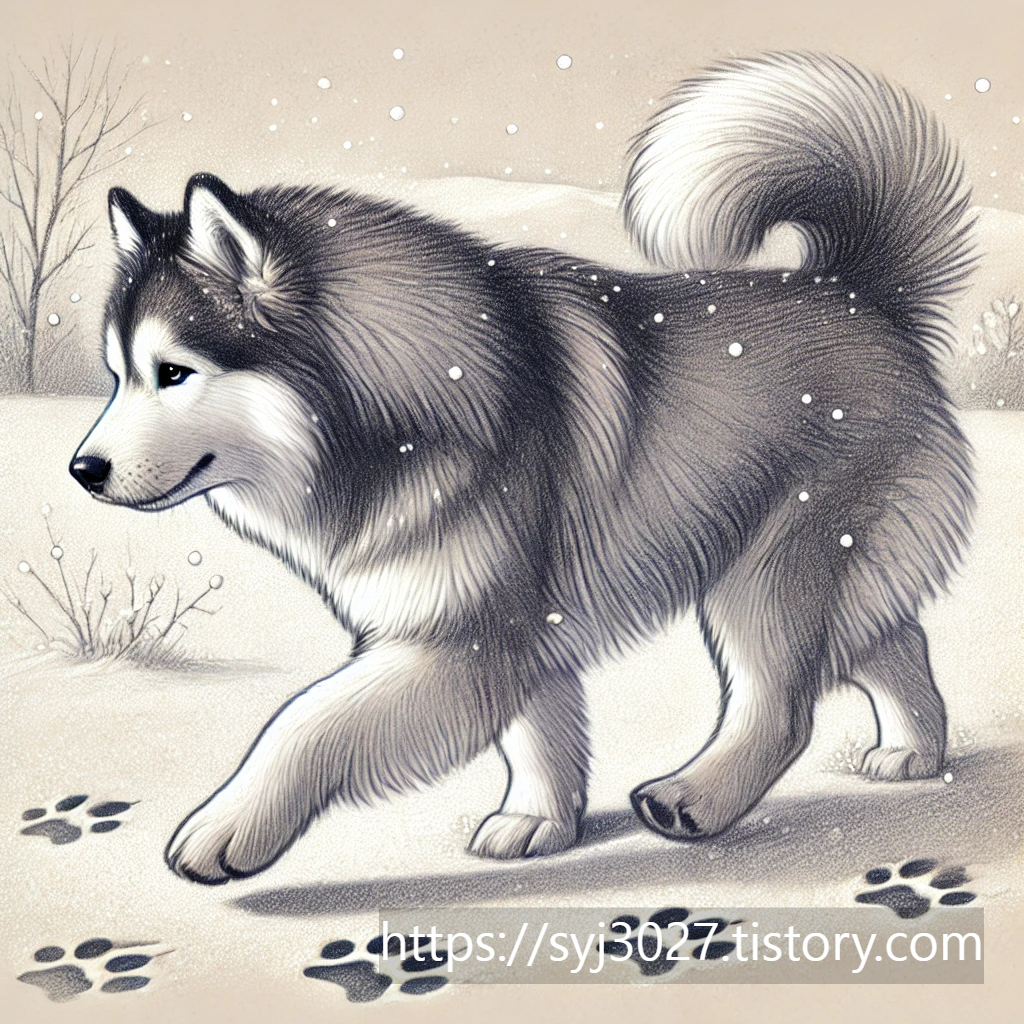 북극 지역에서 유래한 견종으로 두꺼운 이중 모피가 있어 추위를 견디는 능력이 탁월합니다. 눈 속에서 뛰어놀기를 즐기며, 썰매견으로도 활동할 만큼 눈과 친숙합니다.