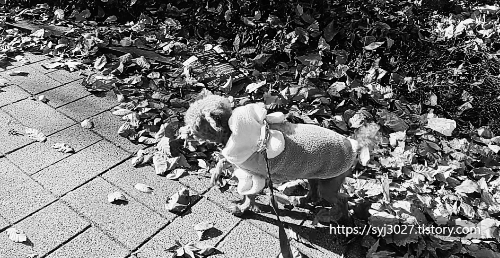 날씨가 너무 추운거 같아서 산책을 포기할까 하다가 데리고 나왔습니다.