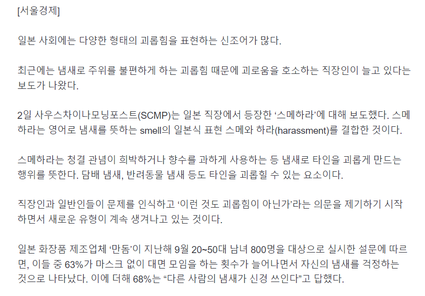 출퇴근을 대중교통을 이용하다보니 진한 화장품 냄새개 힘들떄가 있다
