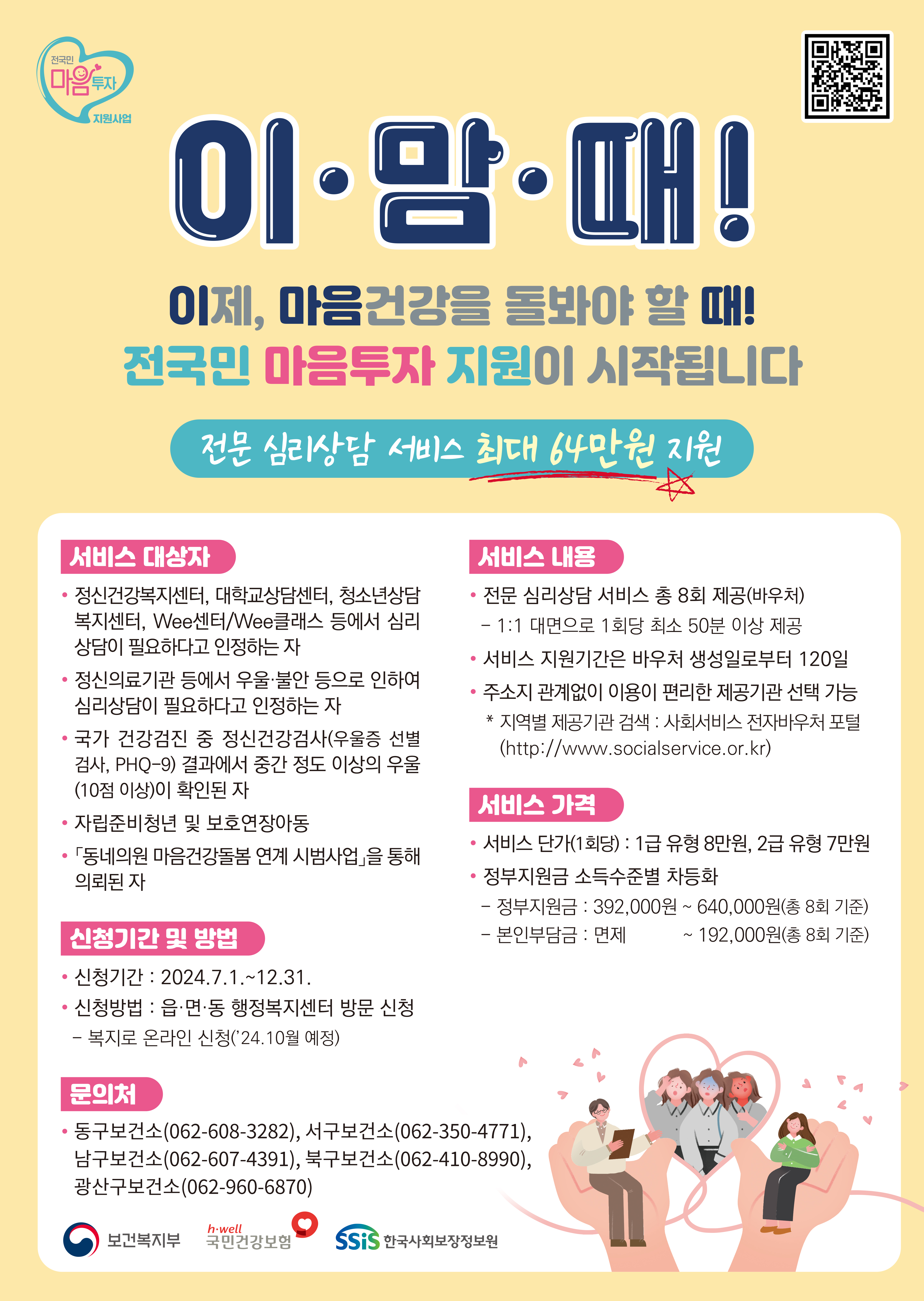 우울·불안 등 정서적 어려움이 있는 국민에게 심리상담 서비스를 제공하여, 국민의 마음건강 돌봄 및 정신질환 사전 예방·조기발견