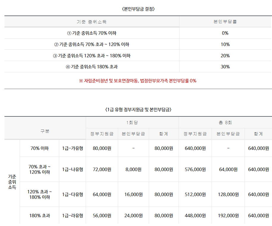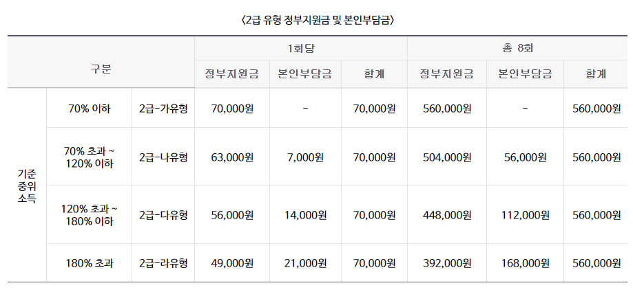 (1회당 바우처 단가) 1급 유형은 8만원, 2급 유형은 7만원