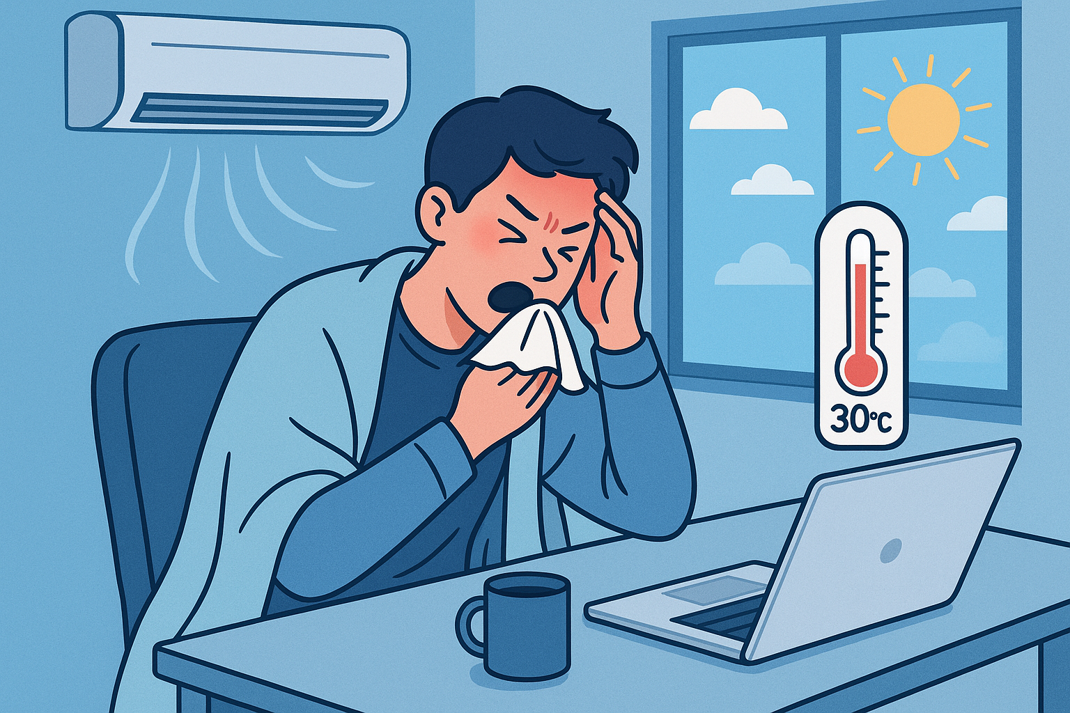 냉방병은 의학적으로 ‘공조기 증후군’이라 불리며, 갑작스러운 실내외 온도 차이로 인해 우리 몸의 자율신경계 균형이 무너져 나타나는 증상이다.