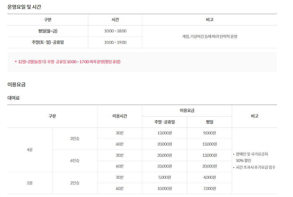 공원의 뛰어난 경관속에 행복한 가족, 연인의 나들이가 될 수 있도록 2륜, 4륜 자전거를 운영하고 있습니다.