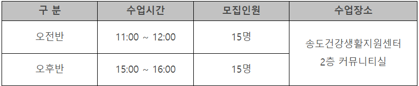 ○ 장 소 : 송도건강생활지원센터 2층 커뮤티니실