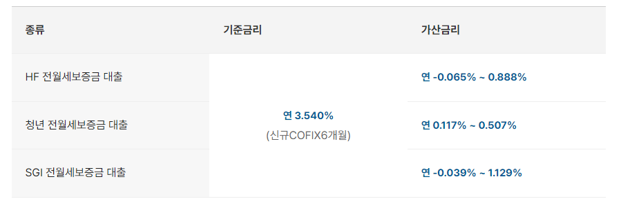 HF 전월세보증금 대출 : 연 3.275% ~ 4.428%