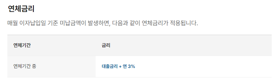미납 상태에서 1개월 이상 해당 금액을 상환하지 않으면, 1개월 경과 시점에 대출원금에 대하여 연체이자가 발생하게 됩니다. 자세한 사항은 약관 및 상품설명서에서 확인 가능합니다.